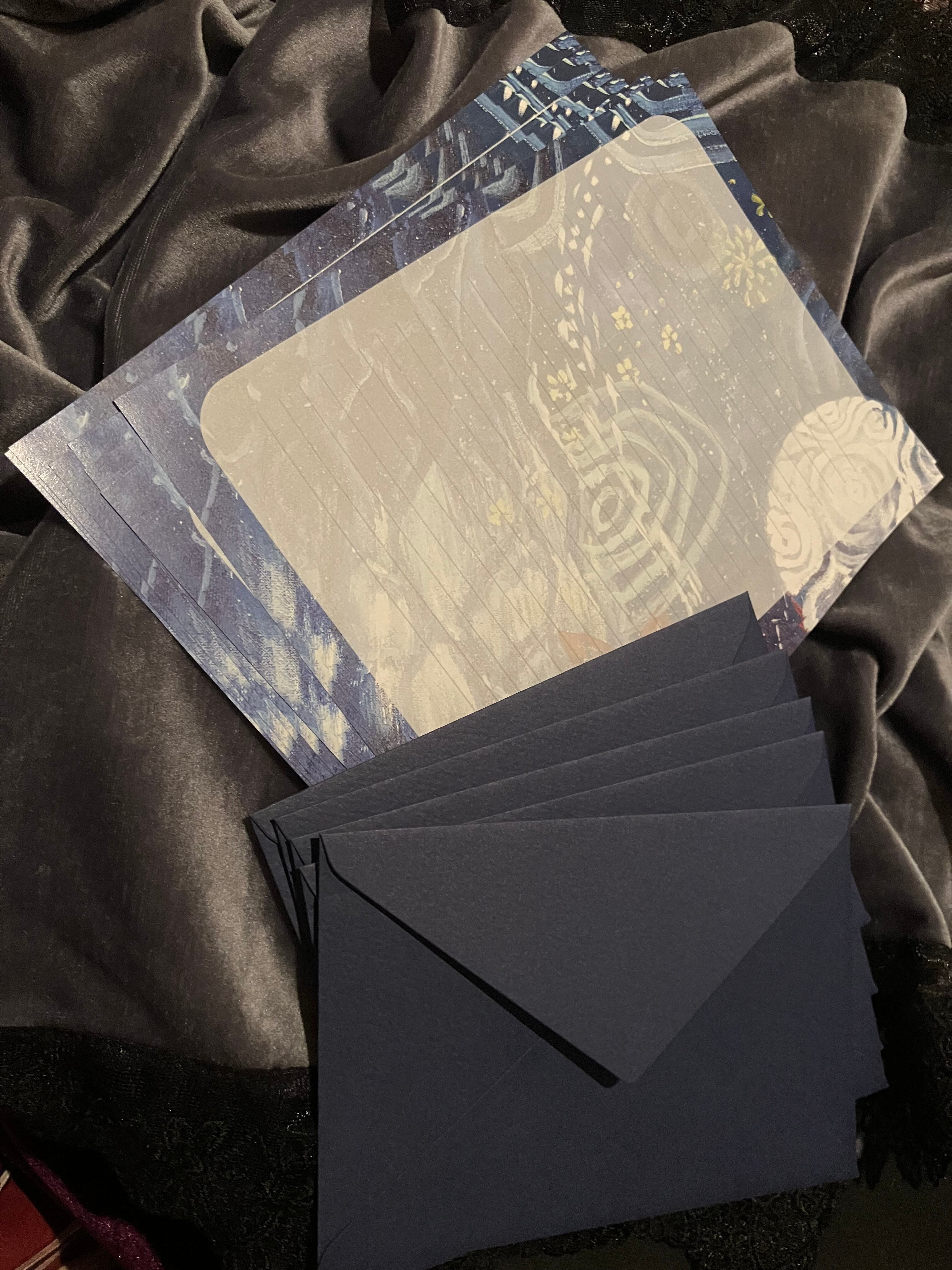 劇中に登場するアクリル絵画デザインのレターセット(青)